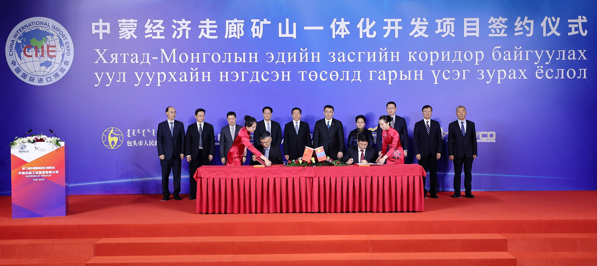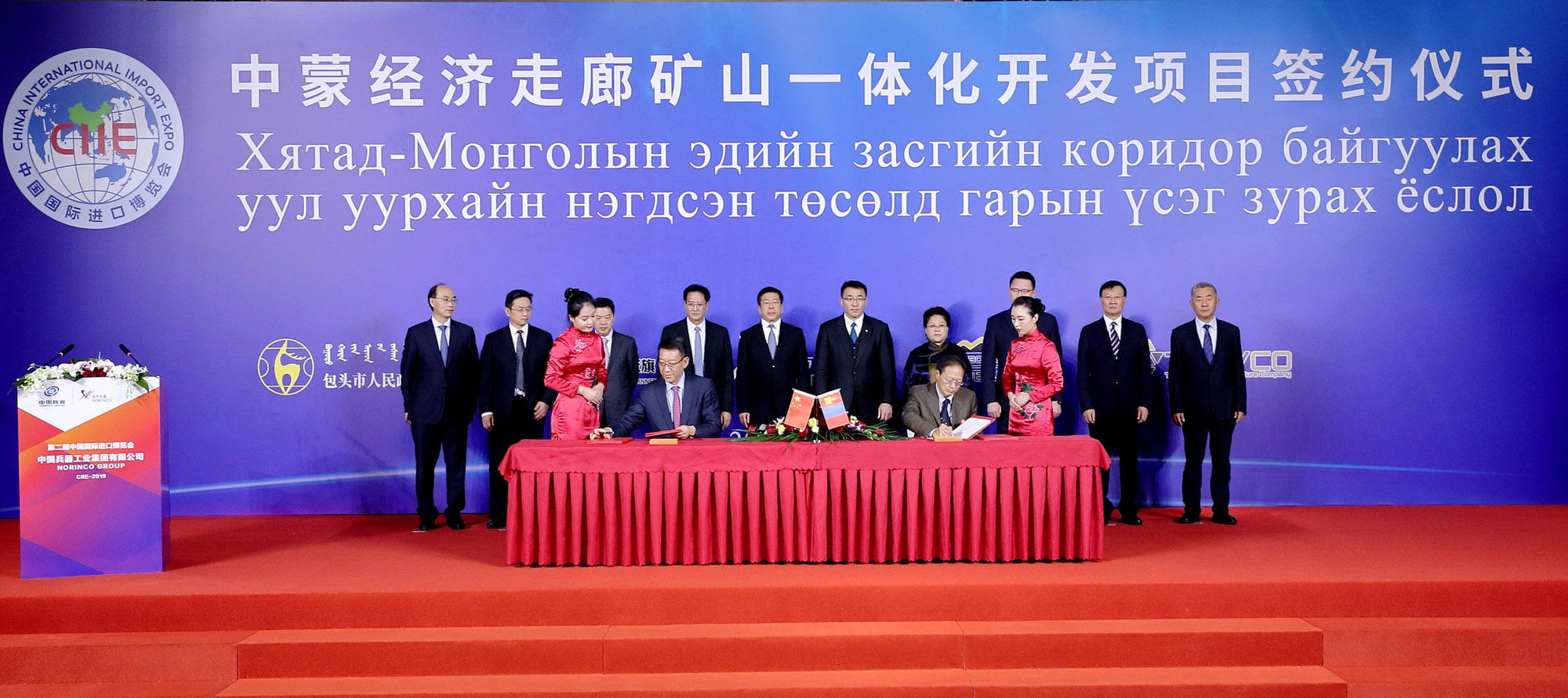 11月4日,第二屆中國(guó)國(guó)際進(jìn)口博覽會(huì)開(kāi)幕前,在中國(guó)兵器工業(yè)集團(tuán)有限公司董事長(zhǎng)焦開(kāi)河和蒙古礦業(yè)與重工業(yè)部部長(zhǎng)蘇米亞巴扎爾·道古蘇仁、國(guó)務(wù)院國(guó)資委副主任任洪斌、內(nèi)蒙古自治區(qū)副主席艾麗華的共同見(jiàn)證下,中蒙經(jīng)濟(jì)走廊礦山一體化項(xiàng)目在上海簽約。簽約前,各相關(guān)方進(jìn)行了友好會(huì)談。