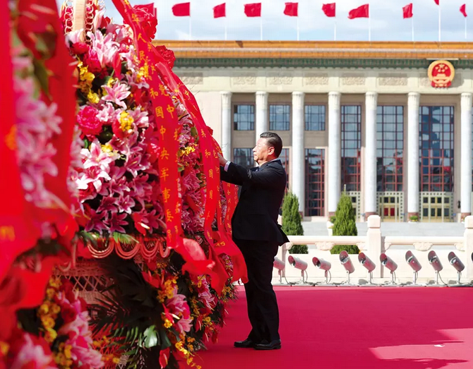 2018年9月30日上午,黨和國家領導人習近平、李克強、栗戰書、汪洋、王滬寧、趙樂際、韓正、王岐山等來到北京天安門廣場,