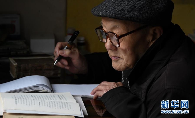 張富清在家里看書學習(3月31日攝)。新華社記者 程敏 攝