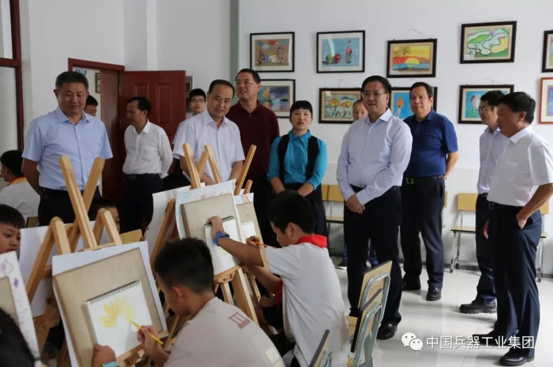 扶貧先扶智,焦開河一行首先來到了具有百余年辦學歷史的紅河縣第一小學。兵器工業集團2018年共投入300余萬元支持紅河縣教育事業,為紅河縣第一小學等19所中小學配備音體美器材、科學實驗儀器設備及圖書設備。調研組在新援建的圖書館里聽取了紅河縣教育局關于兵工教育扶貧的工作介紹,中國扶貧基金會介紹了與集團公司開展戰略合作,引入社會資源開展的“書路計劃”等扶貧項目以及引進資金情況。焦開河逐一查看了集團公司援建的科學實驗室、實驗儀器設備室、計算機教室等;在音樂教室,穿著民族服裝的哈尼族和彝族小學生用稚嫩的聲音唱了一曲《歡迎你》,表達了感謝之情;美術教室里,焦開河與正在上課的同學們交談并合影留念。