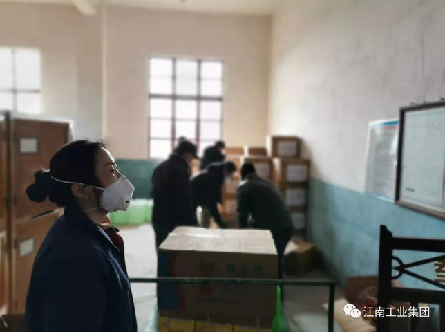 江南工業集團為保障公司順利復工復產,向34個單位發放了多種防疫物資。為確保發放有序,避免集中領取,排定各單位領用時間,杜絕人員集中。