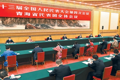 3月7日,中共中央總書記、國家主席、中央軍委主席習近平參加十三屆全國人大四次會議青海代表團的審議。新華社記者 李濤攝