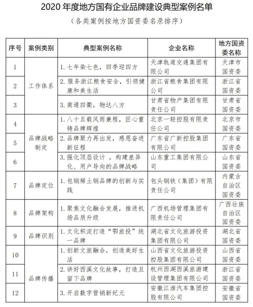 2020年度100個(gè)國(guó)有企業(yè)品牌建設(shè)典型案例和100個(gè)優(yōu)秀品牌故事,匯集企業(yè)優(yōu)秀經(jīng)驗(yàn)做法,豐富國(guó)企品牌資源池,促進(jìn)企業(yè)相互學(xué)習(xí)借鑒,加快提高品牌管理專(zhuān)業(yè)化水平。