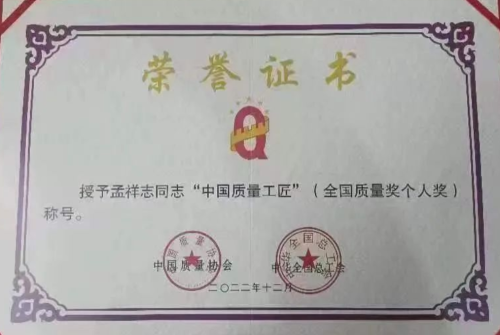 兵器工業(yè)集團孟祥志榮獲“中國質(zhì)量工匠”稱號