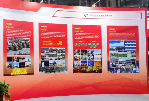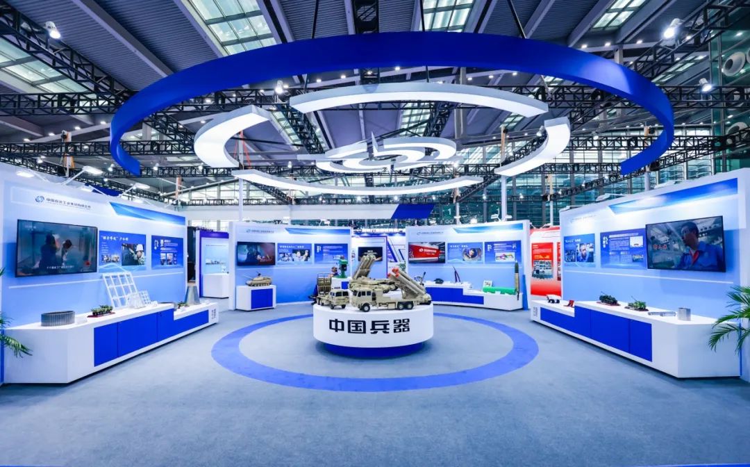 中國兵器工業集團有限公司所在展位按照“1+6”的主題格局進行布展,組織北方公司、兵器一院、北斗院、光電集團、信息院集團、一機集團、北重集團、北方車輛集團、武重集團、北奔重汽、豫西集團、淮海集團和西北工業集團13家單位參加國防郵電產業專題展區(1號館)展示。其中,“1”代表集團公司總體情況,“6”分別代表六大主題:大國工匠主題、大國重器主題、職工創新成果主題、向祖國匯報主題、“一帶一路”主題、產業前瞻主題,總布展面積約590平米。