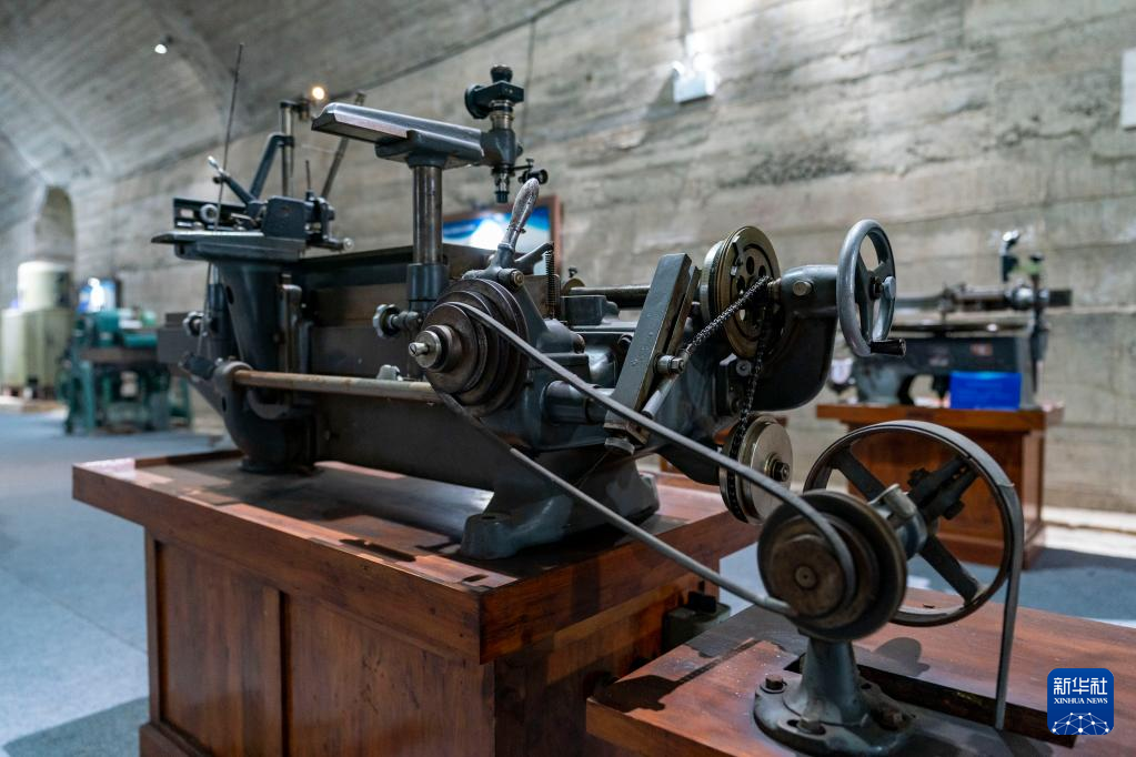 這是5月16日拍攝的中國光學歷史博物館內收藏的螺紋車床。