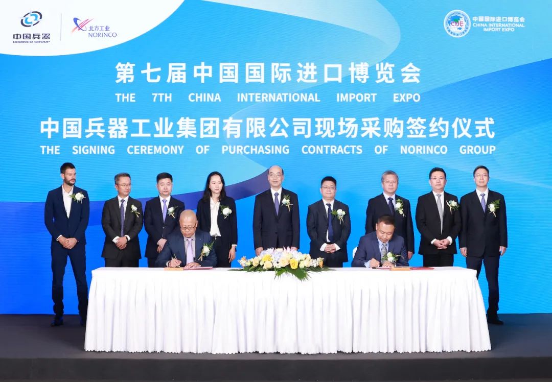 11月6日,兵器工業集團舉辦第七屆中國國際進口博覽會專場采購簽約儀式,組織所屬成員單位聚焦“戰略資源、工業原材料、精密技術裝備”三大領域,精準對接采購需求,與來自美國、英國、法國、瑞士、沙特、智利等12個國家和地區的合作伙伴開展集中簽約,累計簽約進口采購合同26個,總簽約金額超過370億元人民幣,再創歷史新高。與此同時,集團公司高度重視簽約質量,實現質的有效提升和量的合理增長,進一步推動進口質量效益持續穩定發展。
