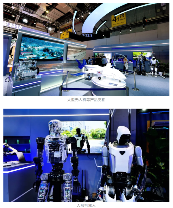 國產礦用車盡展“中國智造”硬核實力和智慧礦山應用深度;CY-8大型無人機構建低空戰略投送支點;新一代四足機器人以“高環境適應性”確保使命必達;“伏羲”人形機器人展示在復雜環境下的高機動能力;“踏山”助行外骨骼可智能識別12種地形,預判準確率高達99.2%;全球首款穿戴式涵道飛行器以100kg載荷和1000米升限,重新定義個人空中作業的可能性。